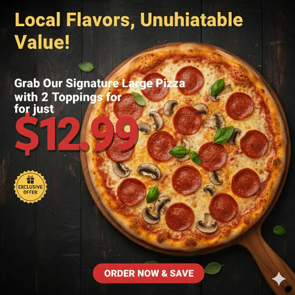 Family Special: “Get 2 Large Pizzas with 2 Sides – Starting at $19.99 (Offer by local participating vendors)